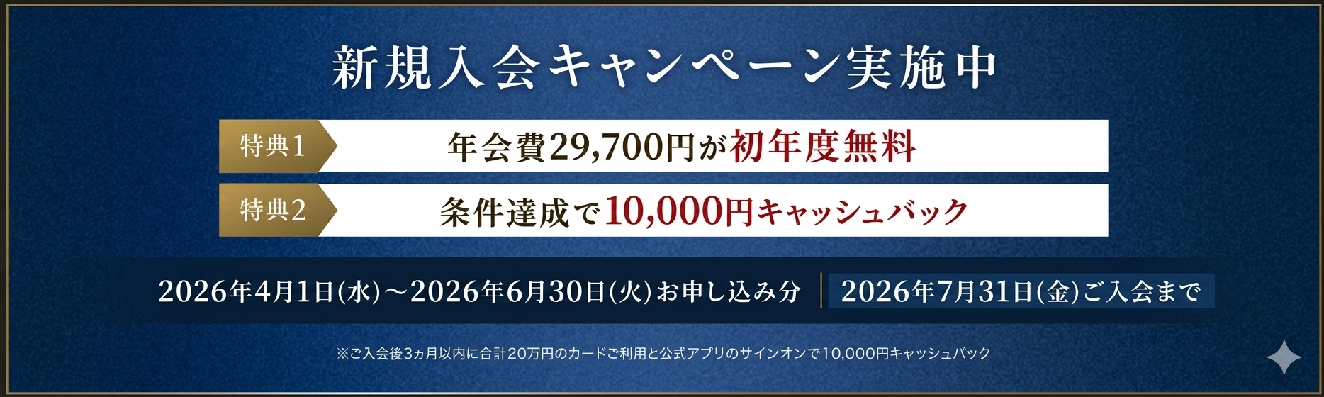 初年度年会費の優待やポイント付与など、その内容は時期によって異なります。現在の正確なキャンペーン条件は、お申し込み前に必ず公式サイトにてご確認ください。もし優待期間中であれば、この世界観を最もスマートに体験し始めるチャンスとなります。